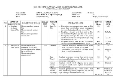 Ilmu, bedah kisi kisi edisi terbaru. Soal uas biologi kelas xi sma. Contoh kisi kisi soal bahasa inggris smp kelas 7 kurikulum 2013. By soalbagus 08 apr, 2017. kisi soal kelas 2 semester 1 k13 revisi 2018 uh pts, kisi kisi soal fiqih mts kelas 7.